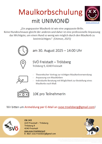 Wir freuen uns, dass wir eine Maulkorbschulung mit UNIMO© bei uns im Verein veranstalten dürfen!